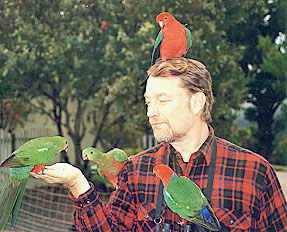 You never have far to go, if you want to see some of the wonderful flora and fauna. Here are some of the local birds who are always looking for a handout.Here I am feeding a few of the friendly parrots. The vibrant colors on the various parrots are incredible!